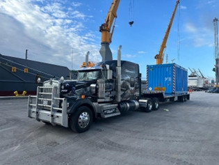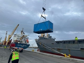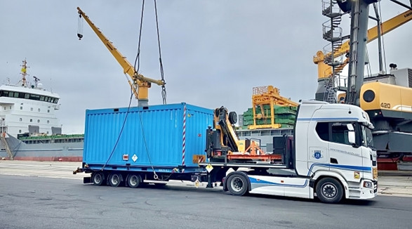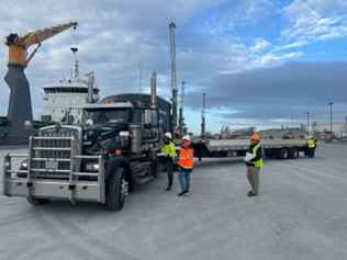 - Déchargement de l’unité de transport dans le port aux USA
